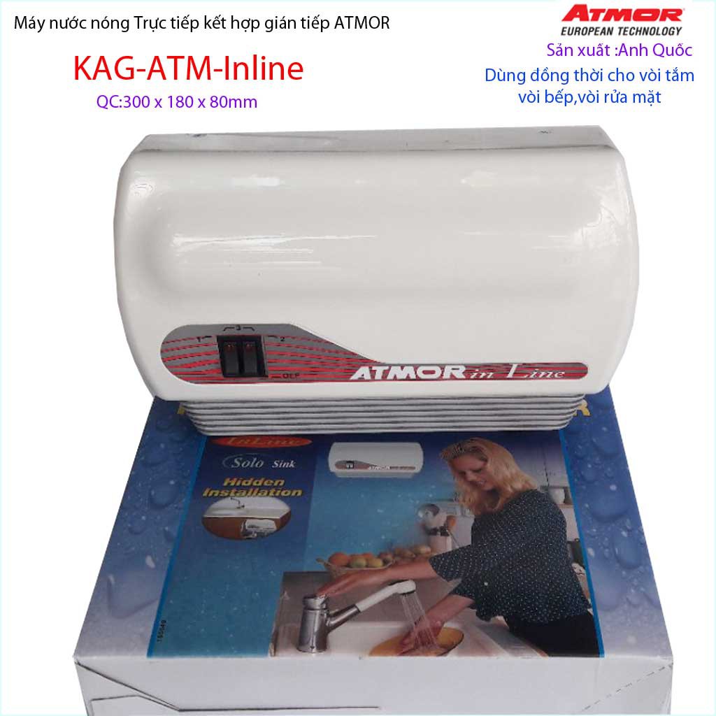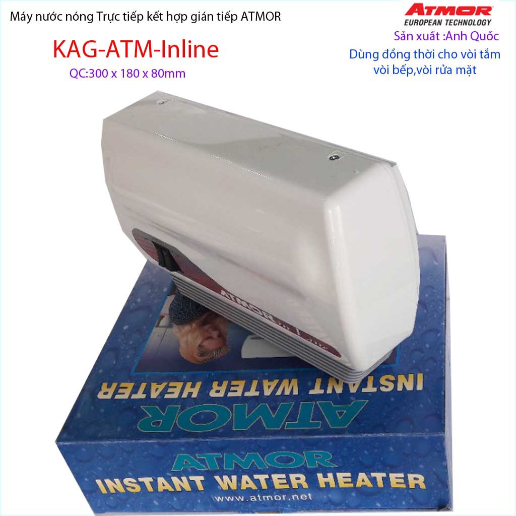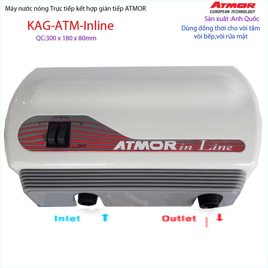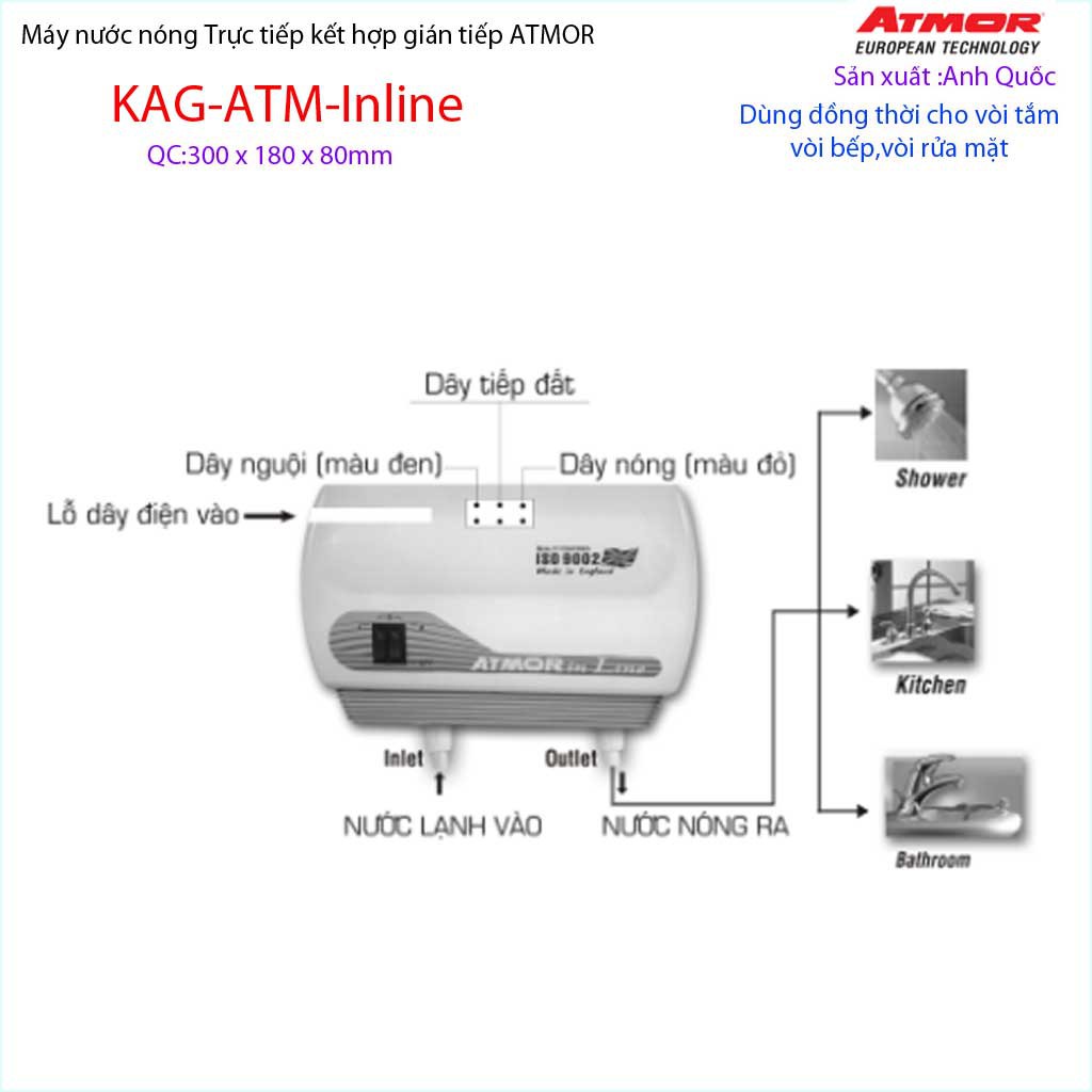 Máy nước nóng Atmor KAG-ATM-Inline trực tiếp kết hợp gián tiếp, 1 máy nước nóng dùng cho nguyên căn hộ chung cư, máy chống giật hiệu suất tốtMáy nước nóng trực tiếp kết hợp gián tiếp, máy tắm nước nóng Atmor KAG-ATM-Inline là máy gián tiếp thu nhỏ, lượng nước nóng không phụ thuộc vào bình chứ sử dụng như máy trực tiếp-> Mở máy là có nước nóng ngay, không cần chờ đợi như máy gián tiếp truyền thống