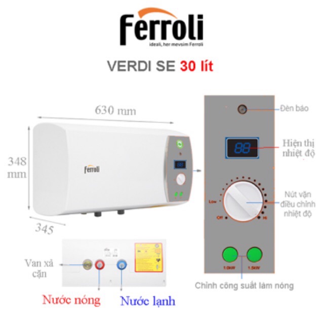 Thiết Bị Điện Gia Dụng > Thiết bị điện gia dụng lớn > Máy nước nóng || Máy nước nóng chống giật Ferroli Verdi SE 15/20/30LSo sánh giá ×