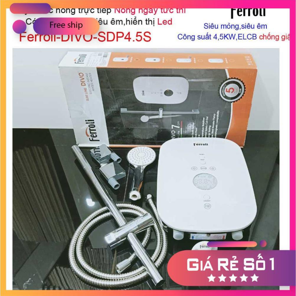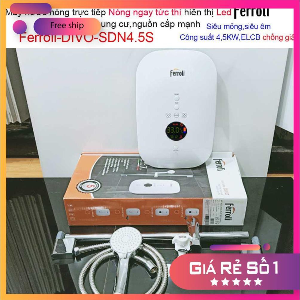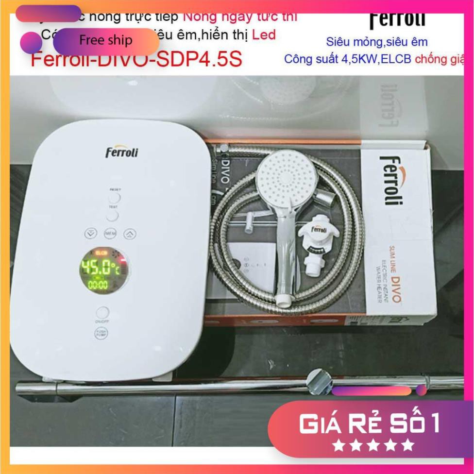 Máy nước nóng Ferroli Divo SDP4.5S có bơm màn hình LED hiển thị nhiệt độ, Bình nước nóng trực tiếp Ferroli chính hãng