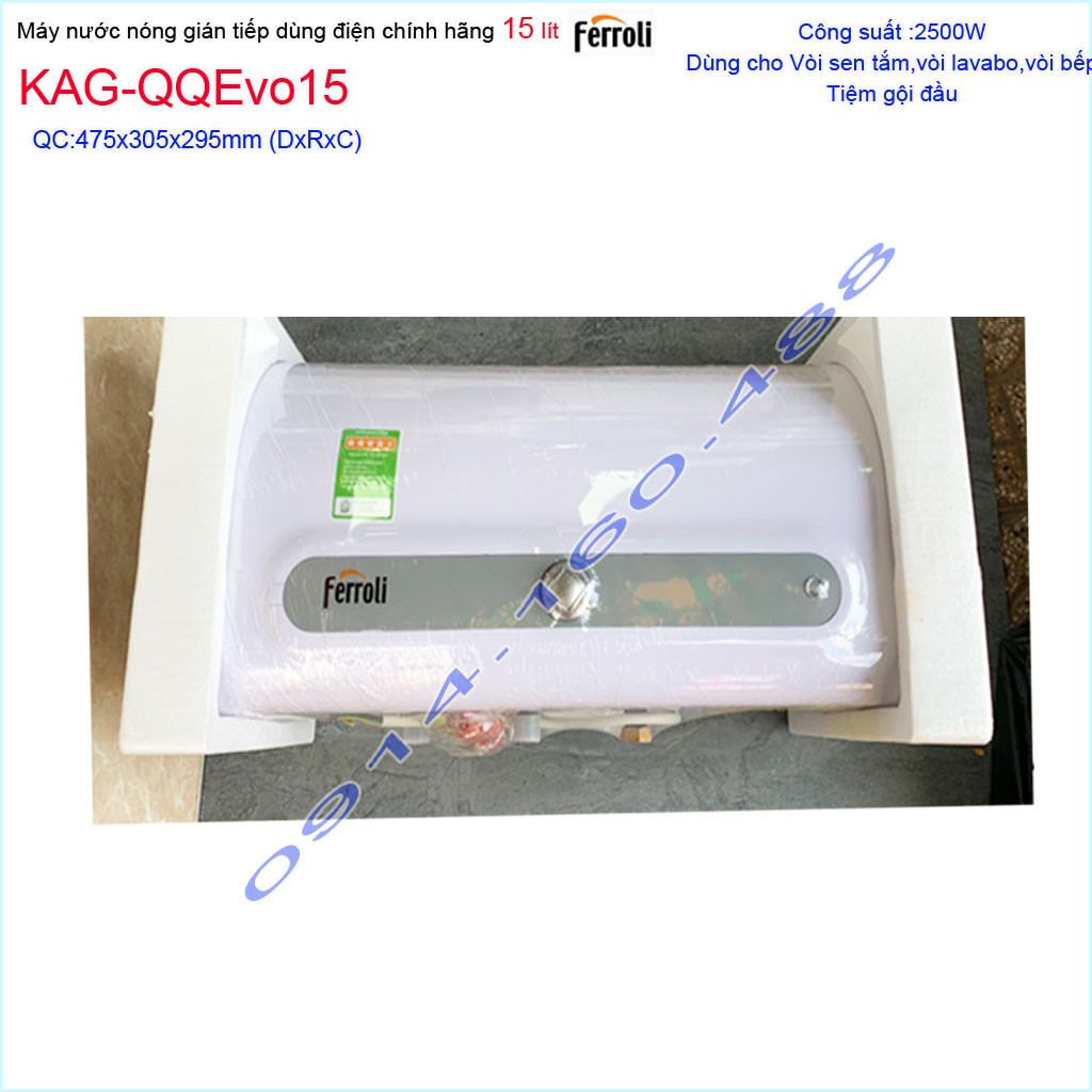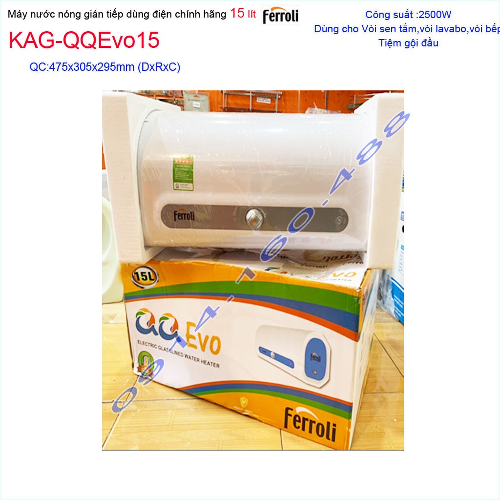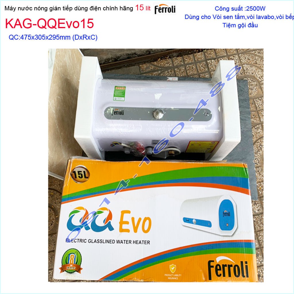 Máy nước nóng Ferroli QQ Evo 15 lít KAG-QQEvo15, bình nước nóng gián tiếp 15 lít chống giật hiệu suất sử dụng tốt