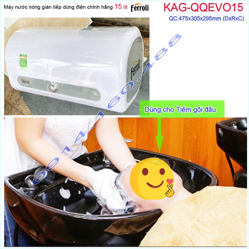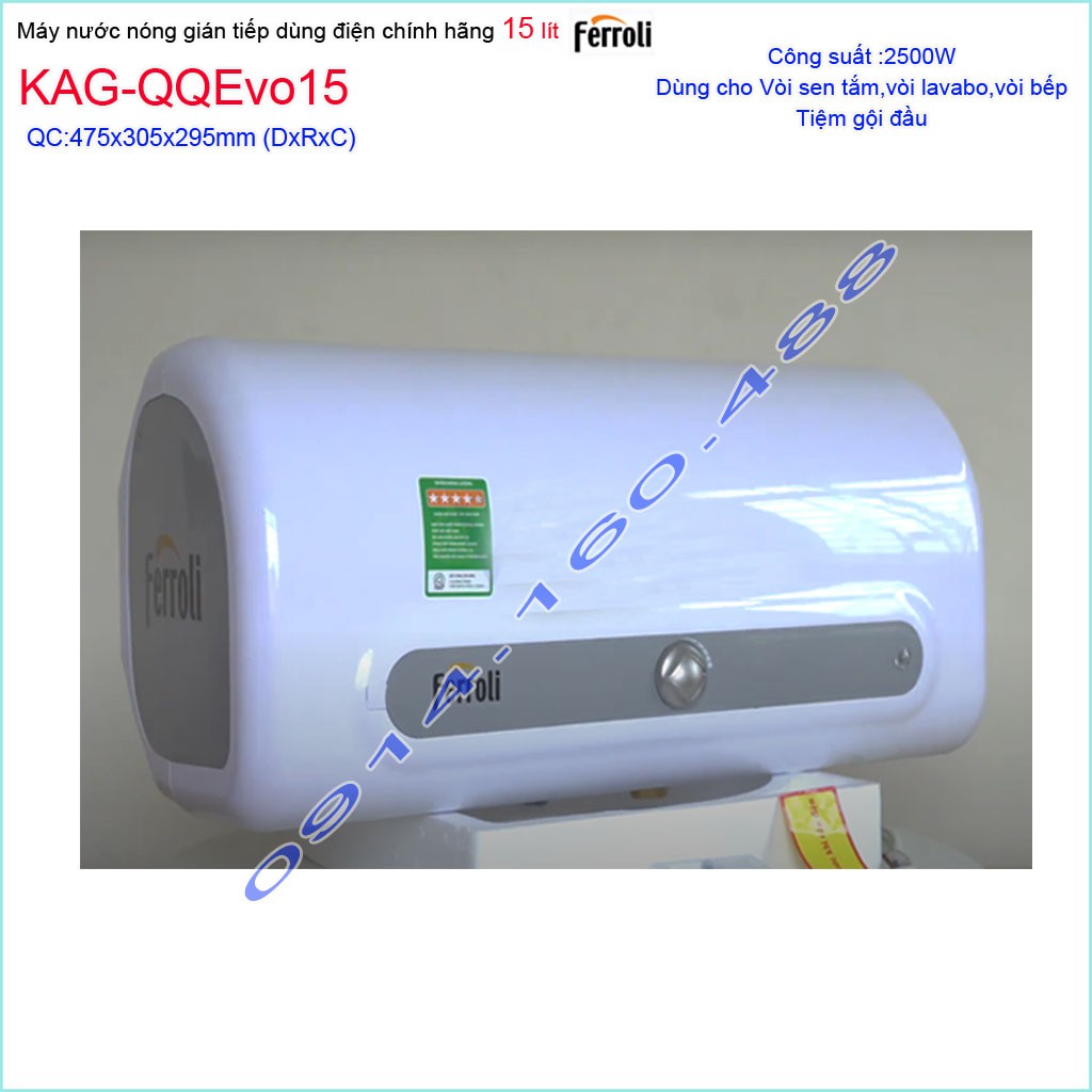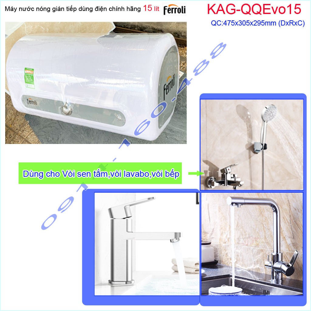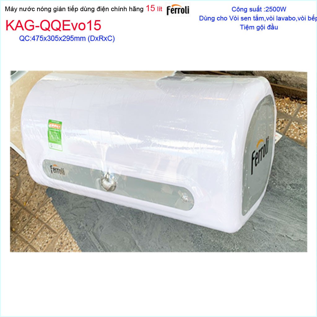 Máy nước nóng Ferroli QQ Evo 15 lít KAG-QQEvo15, bình nước nóng gián tiếp 15 lít chống giật hiệu suất sử dụng tốt