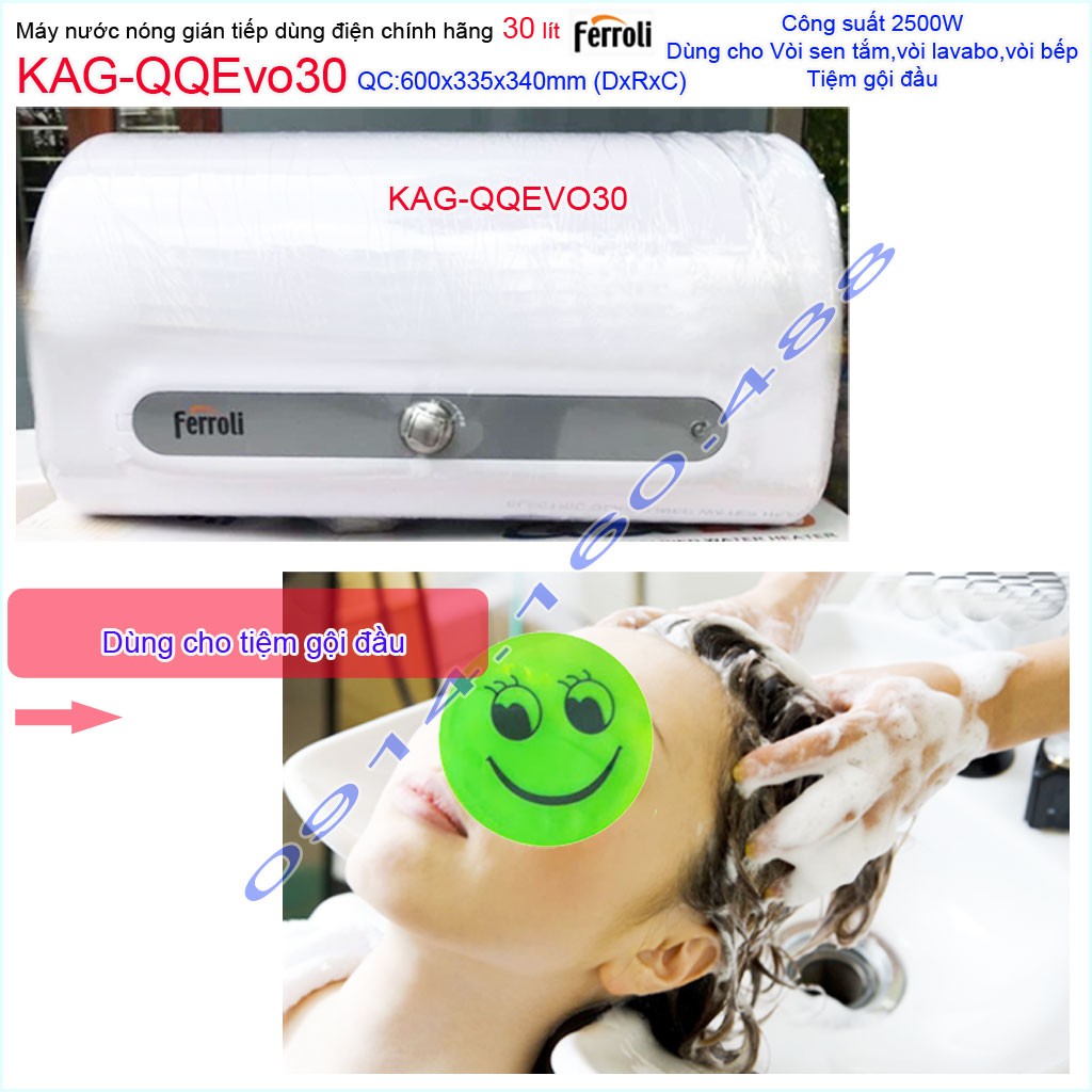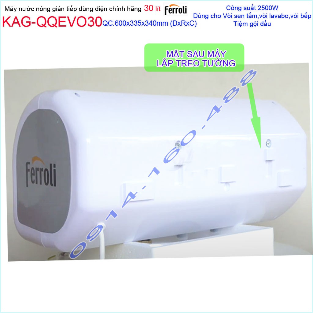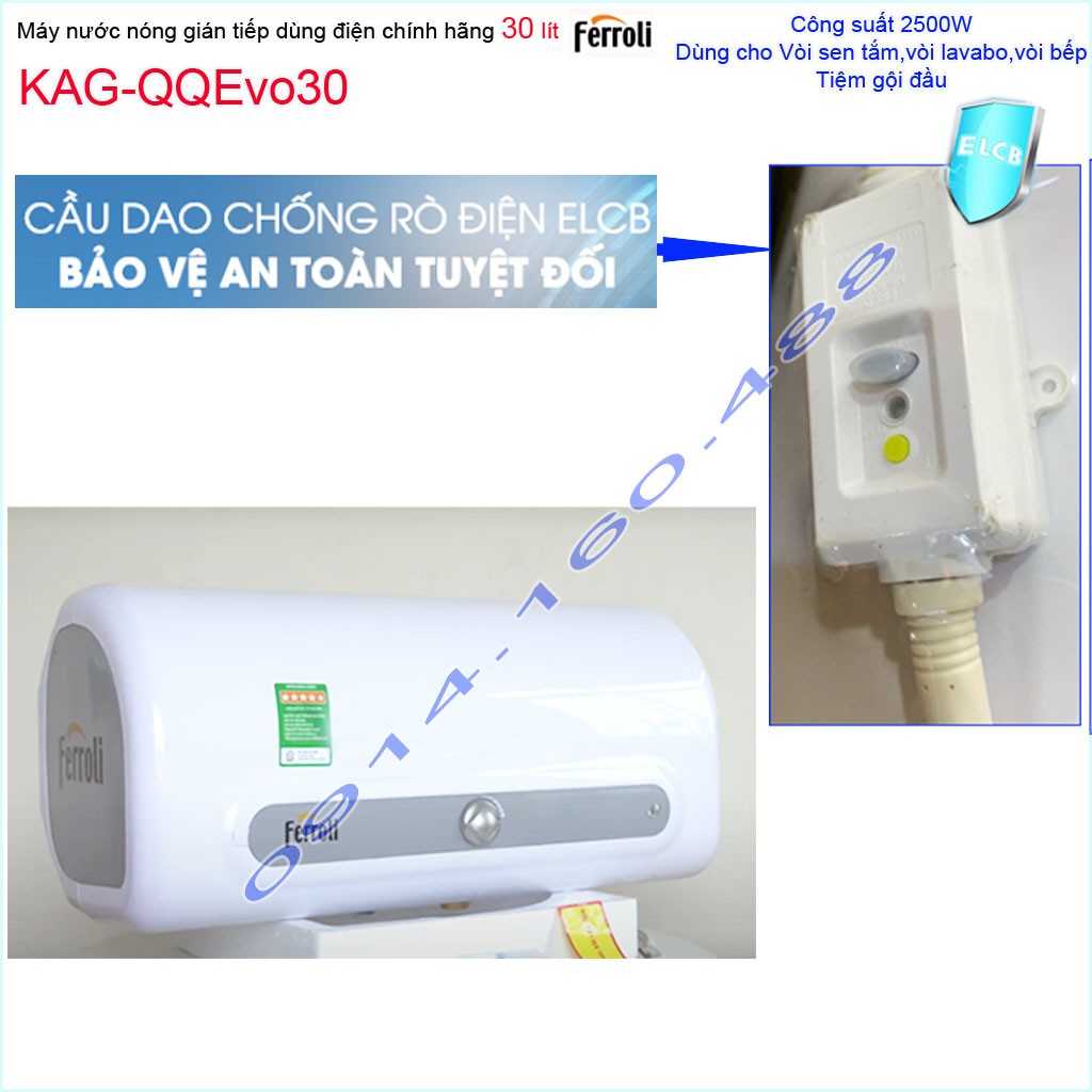 Máy nước nóng Ferroli QQ Evo 30 lít KAG-QQEvo30, bình nước nóng gián tiếp 30 lít chống giật hiệu suất sử dụng tốt