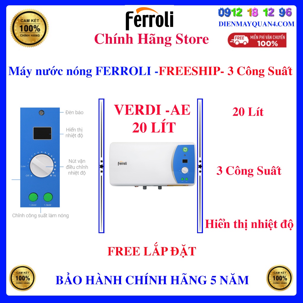 Thanh nhiệt - Bình nước nóng Ferroli VERDI 20L AE 20 Lít