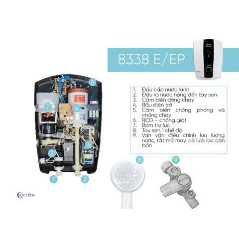 Máy nước nóng trực tiếp Centon 8338E( không bơm), centon 8338EP(có bơm) công suất 5.5kw