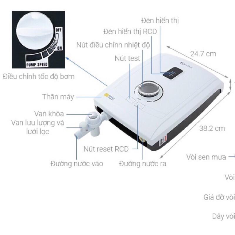 - Có núm chỉnh tốc độ bơm dễ dàng điều chỉnh cho phù hợp với áp lực nước tại mọi thời điểm