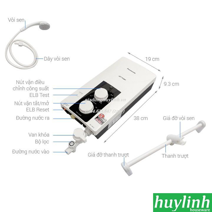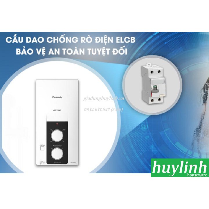 - Với trang bị cầu dao chống rò điện ELCB có khả năng ngắt điện khi phát hiện sự cố, bạn hoàn toàn yên tâm về sự an toàn của cả gia đình khi sử dụng máy nước nóng trực tiếp có bơm Panasonic DH-3RP2VK. Bên cạnh đó, công tắc đóng mở bằng nút vặn xoay vô cùng tiện lợi.
