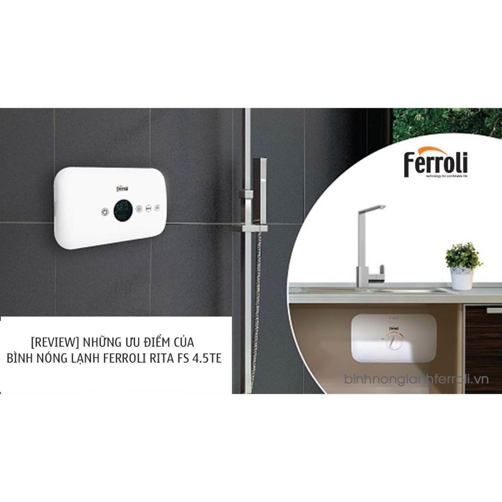 Giới thiệu Máy nước nóng trực tiếp Ferroli RITA FS - 4.5TE, chống giật, bảo hành chính hãng 2 năm