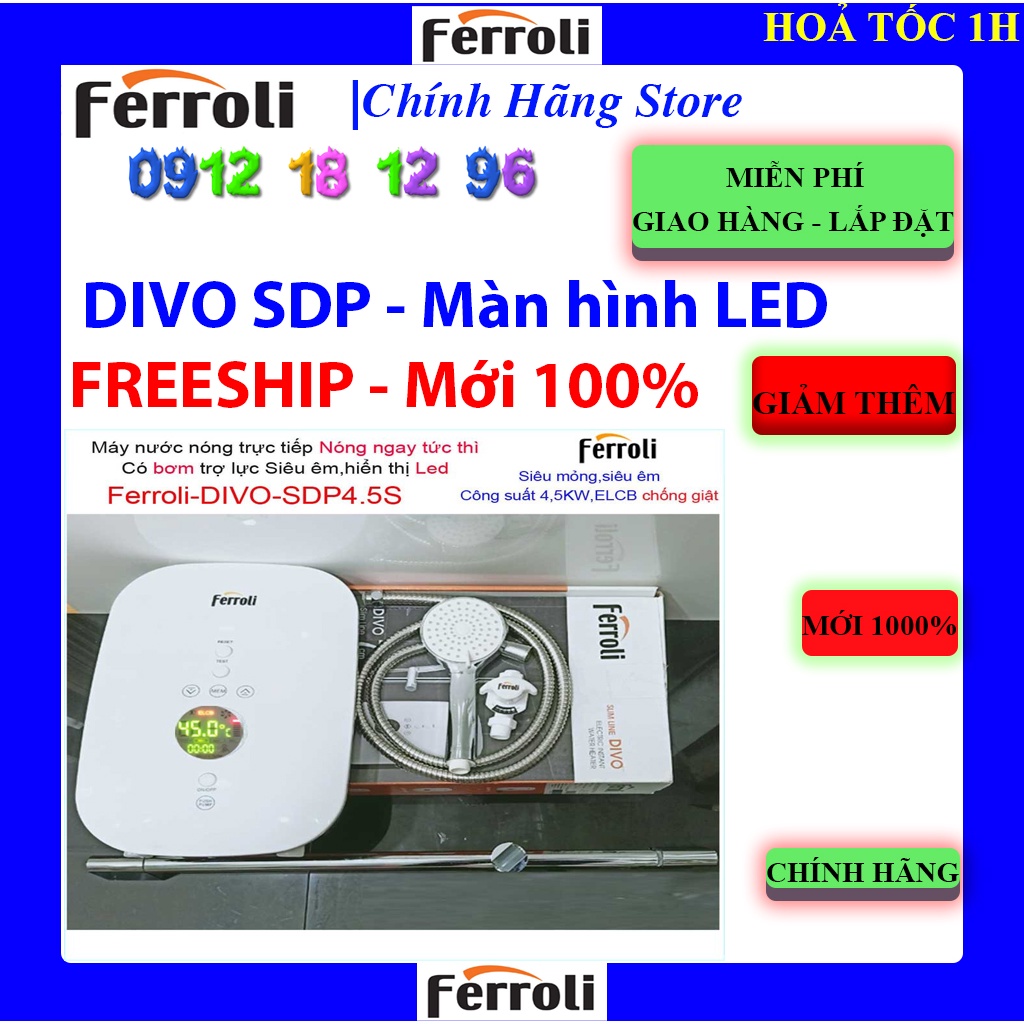 [Mã ELHAMS5 giảm 6% đơn 300K] Máy nước nóng trực tiếp Ferroli DIVO SDP 4.5 kW có bơm -Bảo hành chính hãng 5 năm