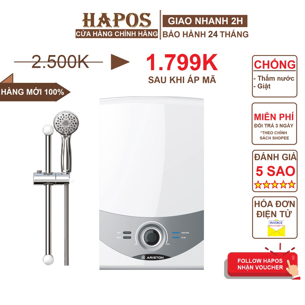 Thiết Bị Điện Gia Dụng > Thiết bị điện gia dụng lớn > Máy nước nóng || Máy nước nóng trực tiếp không bơm Ariston SM45E-VN Trắng - 4500W - 3 mức nhiệt - HAPOS phân phốiSo sánh giá ×
