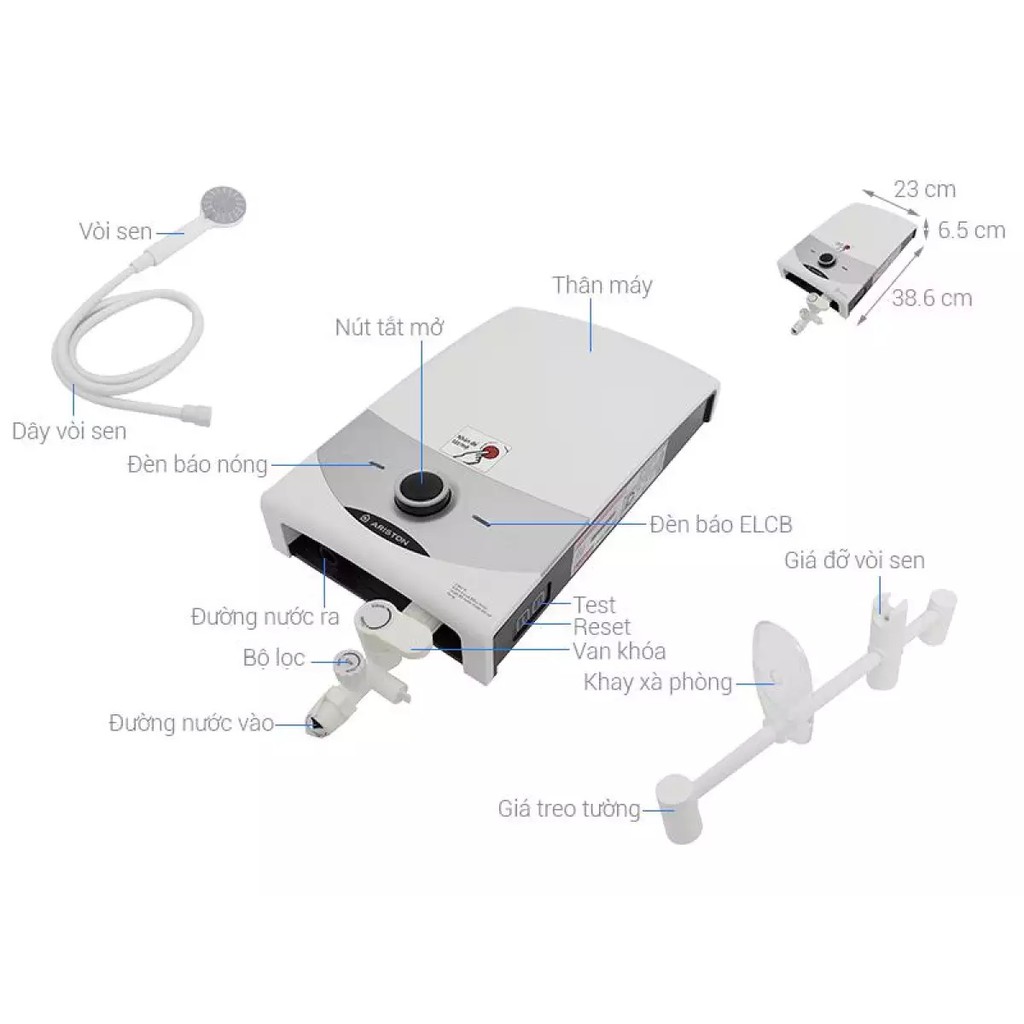 Giới thiệu Máy nước nóng trực tiếp không bơm Ariston SM45E-VN Trắng - 4500W - 3 mức nhiệt - HAPOS phân phối