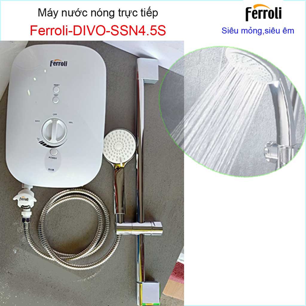 Giới thiệu Máy nước nóng trực tiếp Ferroli không bơm SSN 4500W, Best sales Bình nước nóng trực tiếp chống giật hiệu suất tốt