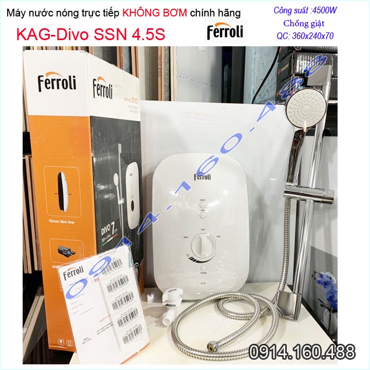 Máy nước nóng trực tiếp Ferroli không bơm SSN 4500W, Best sales Bình nước nóng trực tiếp chống giật hiệu suất tốt