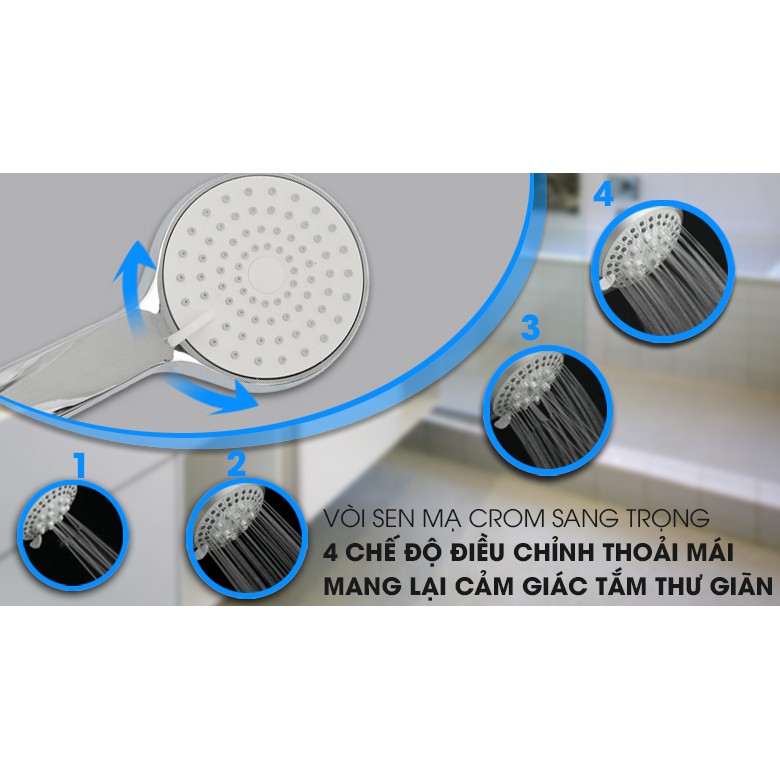 Thiết kế vòi sen mạ Crom sang trọng cùng với 4 chế độ phun đi kèm tiện lợi