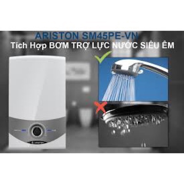 Giới thiệu Máy nước nóng trực tiếp SM45PE-SBS-VN, máy ariston trực tiếp có bơm trợ lực chống rò rỉ điện, máy mới 100%