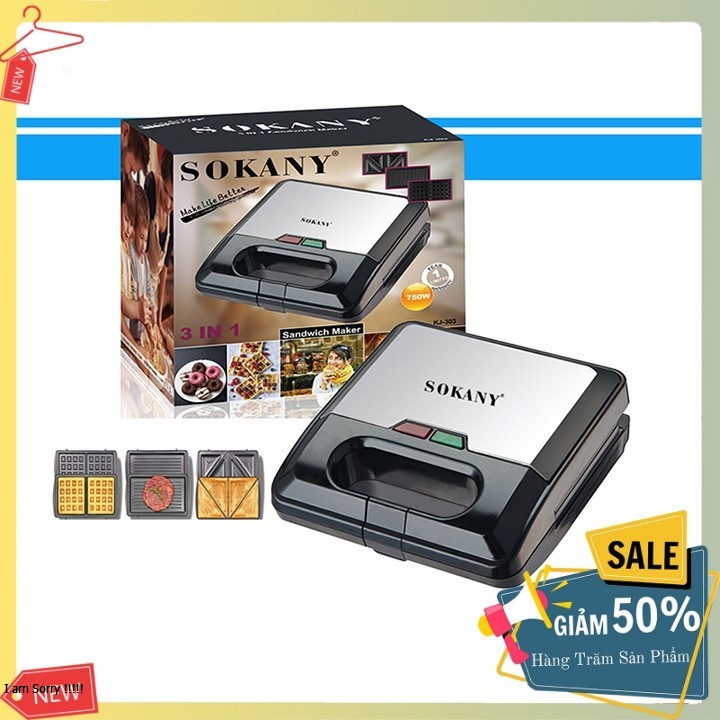 Thiết Bị Điện Gia Dụng > Đồ gia dụng nhà bếp > Máy nướng bánh || Máy nướng bánh đa năng Chính hãng Sokany tặng kèm 3 bộ khuônCòn hàng