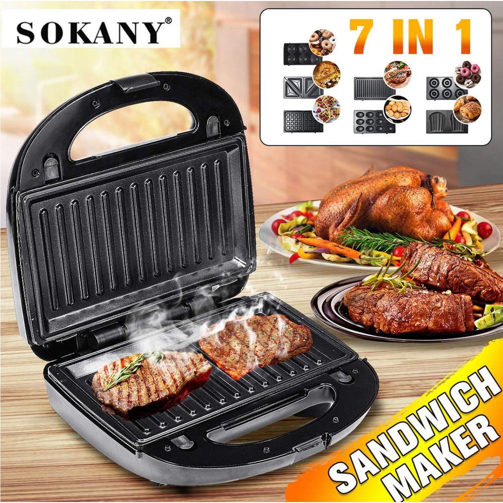 Máy Nướng Bánh Đa Năng, Máy Làm Bánh 7 Loại Khuôn SOKANY Nướng bánh mì, Waffle, Kep Tổ Ong