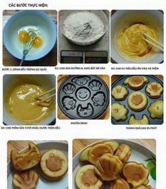 -Chỉ vài phút sau bạn có thể dễ dàng lấy những chiếc bánh đáng yêu ra khỏi khuôn. Và bạn nên thoa thêm một ít dầu ăn mỏng lên khuôn trước khi cho bột vào, bánh sẽ chín vàng và thơm.
