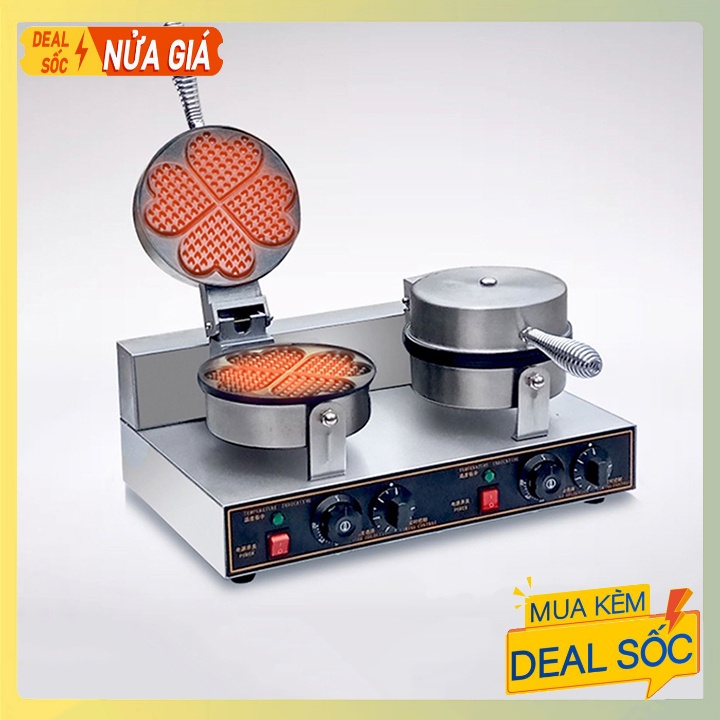 THÔNG SỐ MÁY NƯỚNG BÁNH WAFFLE ĐÔI:+ Máy làm bánh waffle hình trái tim bếp đôi
