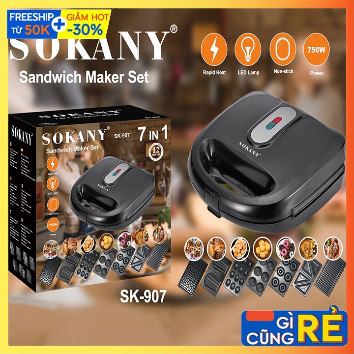 Giới thiệu [Mã ELHADEV giảm 4% đơn 300K] MÁY NƯỚNG BÁNH LÀM BÁNH ĐA NĂNG ĐỦ 7 LOẠI KHUÔN SOKANY