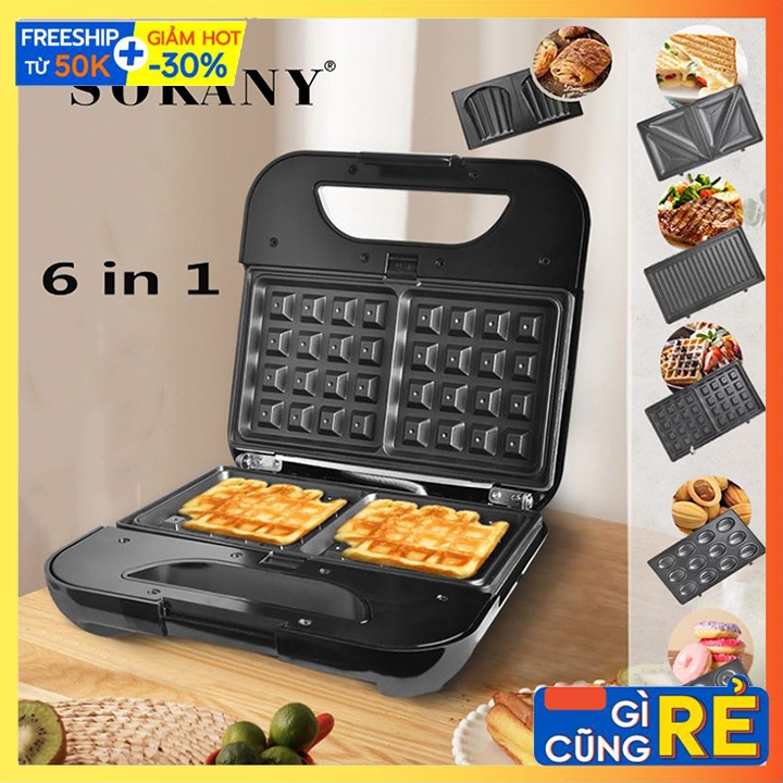 Giới thiệu [Mã ELHADEV giảm 4% đơn 300K] Máy Nướng Bánh, Máy Làm Bánh Đa Năng 6 Loại Khuôn SOKANY
