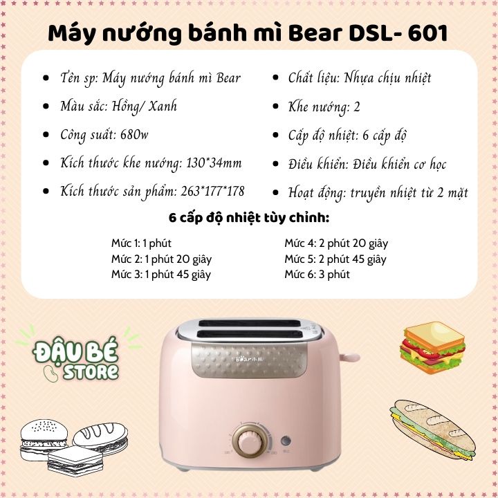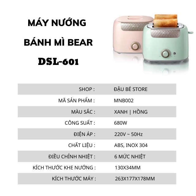 🌈Chào mừng bạn đến với gian hàng chính thức DAUBE!🌈Chúc bạn mua sắm thật vui vẻ! Xin được gửi tới bạn thông tin sản phẩm Máy Nướng Bánh Mì Bear như sau: