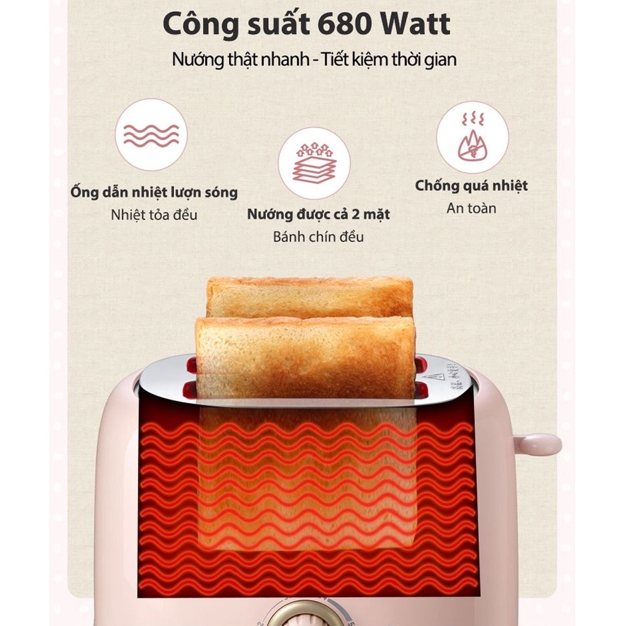 • Thiết kế tinh tế, màu sắc thân thiệnChiếc máy nướng bánh mì Bear DSL-601 là một sản phẩm thú vị khi mang thiết kế dạng bầu tròn, với nhiều đường vắt cong chạy dài dọc theo thân máy. Màu hồng phấn được sử dụng để tăng màu sắc cũng như sự xinh xắn cho sản phẩm. Bữa sáng ngon lành chỉ trong nháy mắt Rất nhiều gia đình trẻ hiện nay chọn cách ăn sáng tại nhà để tiết kiệm chi phí, ngoài ra, ăn sáng tại nhà cũng giúp chủ động hơn vào buổi sáng, Bear DSL-601 có thể giúp bạn chuẩn bị một bữa sáng nhanh chóng, ngon miệng và bổ dưỡng chỉ trong chớp mắt