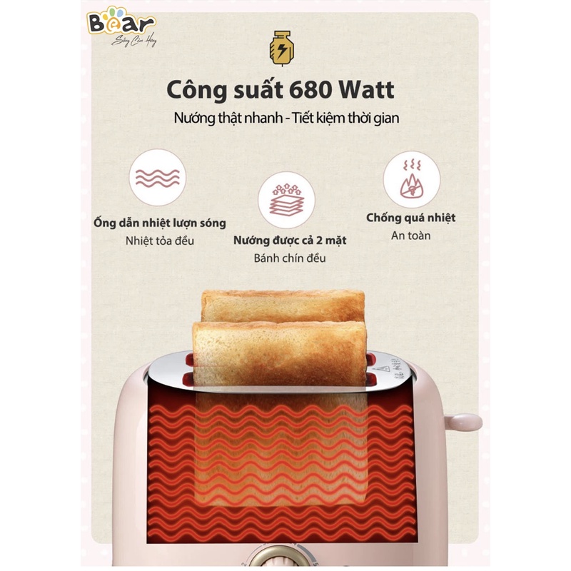 Giới thiệu Máy Nướng Bánh Mì Bear DSL-601 Chính Hãng, bản quốc tế bảo hành 18 tháng công suất 680W , hồng pastel, nhỏ gọn tiện lợi