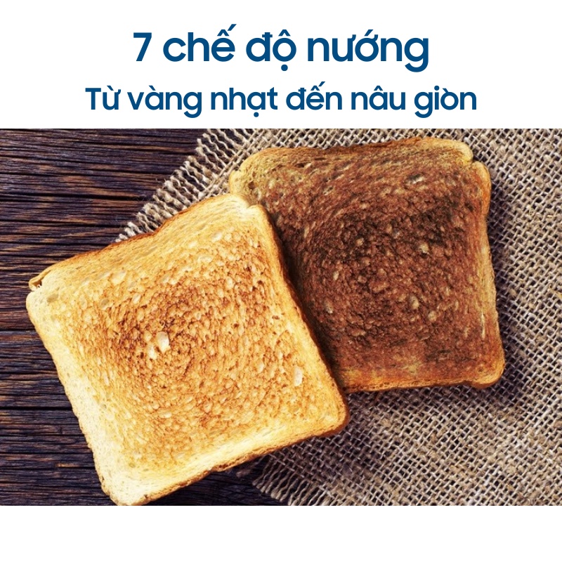 - Máy có 7 chế độ điều chỉnh, giúp tạo độ giòn phù hợp với nhu cầu từ vàng nhạt cho tới nâu giòn.
