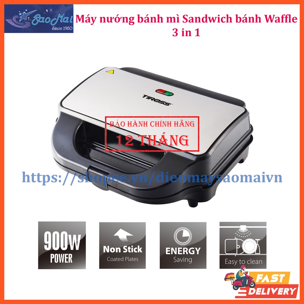 Máy nướng bánh mì, kẹp Sandwich đa năng 3 TRONG 1 Tiross TS9655
