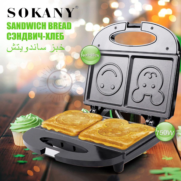 Thiết Bị Điện Gia Dụng > Đồ gia dụng nhà bếp > Máy nướng bánh || [Mã 44ELSALE2 giảm 7% đơn 300K] Máy nướng bánh mì kẹp sandwich hình mặt cười Sokany [BH 12 Tháng]Còn hàng