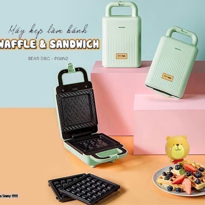 - Máy kẹp nướng bánh Bear có 2 loại vị thay thế: vỉ sandwich & vỉ wafle