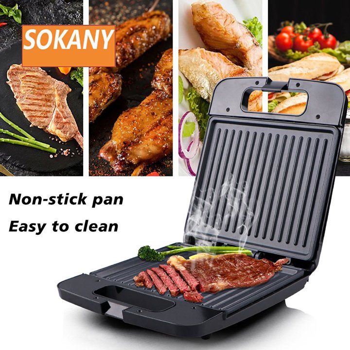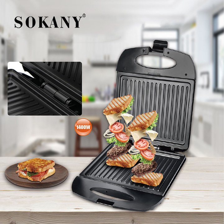Giới thiệu Máy nướng bánh mì, máy kẹp nướng bánh mỳ đôi, nướng thịt bbq Đa năng chính hãng SOKANY 1400W
