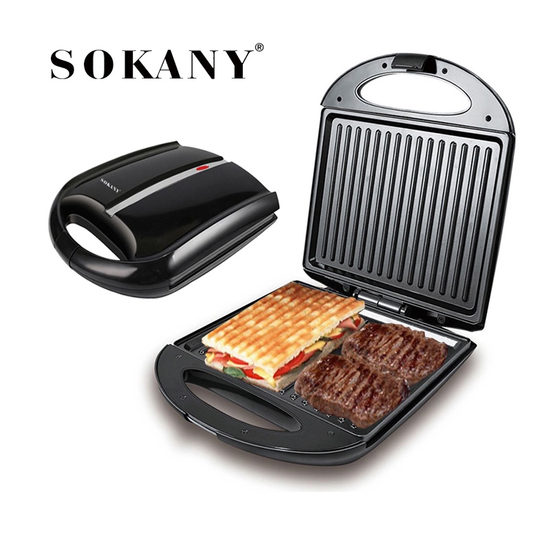 Máy nướng bánh mì, máy kẹp nướng bánh mỳ đôi, nướng thịt bbq Đa năng chính hãng SOKANY 1400W