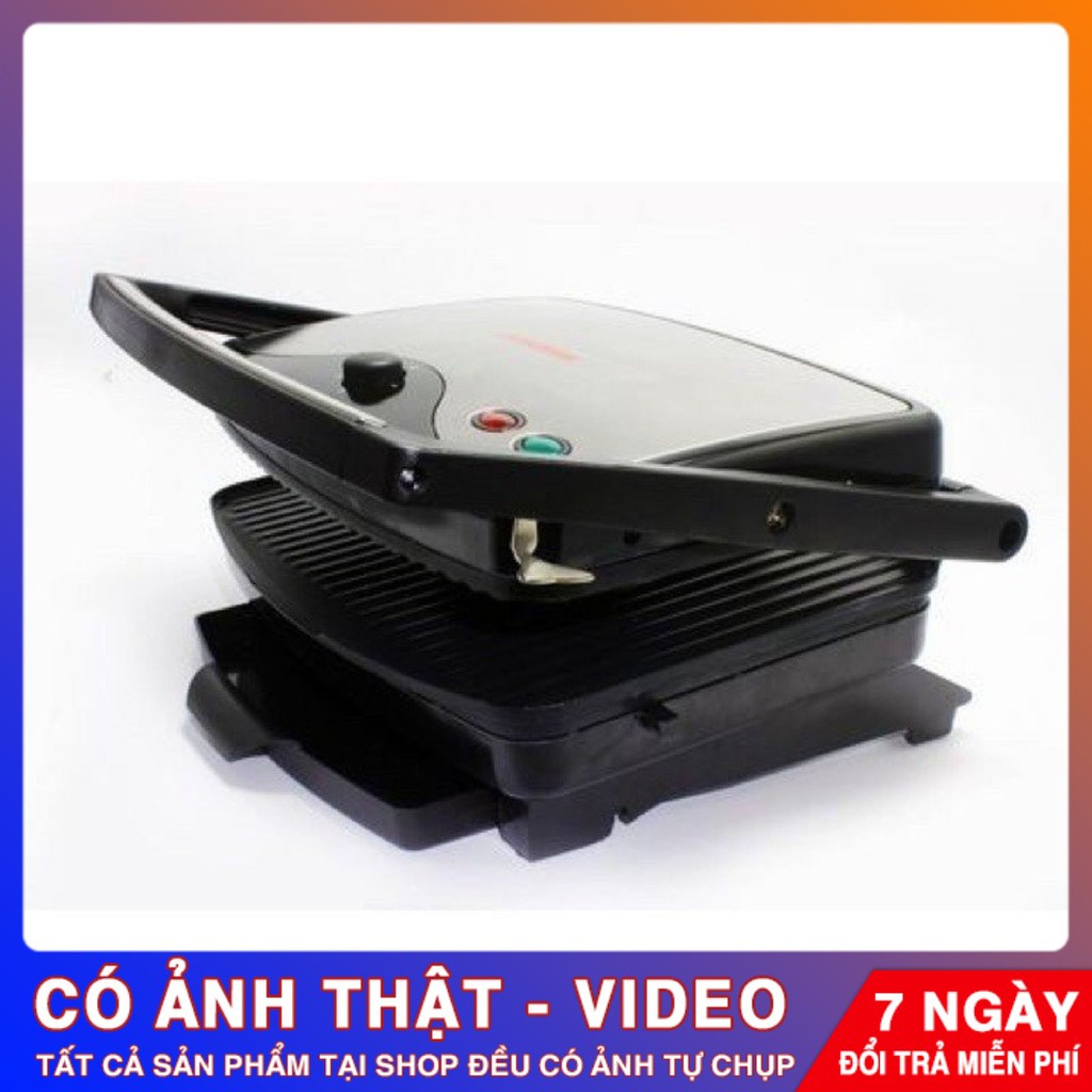 Máy có hai mặt nướng nên cod thể nướng được nhiều thức ăn hơn, mỗi mặt đều có nút điều chỉnh nhiệt độ riêng. Hai mặt hoàn toàn có thể gập lại và có khóa chốt an toàn, tiện lợi để nướng bánh mì hay bánh sandwich.