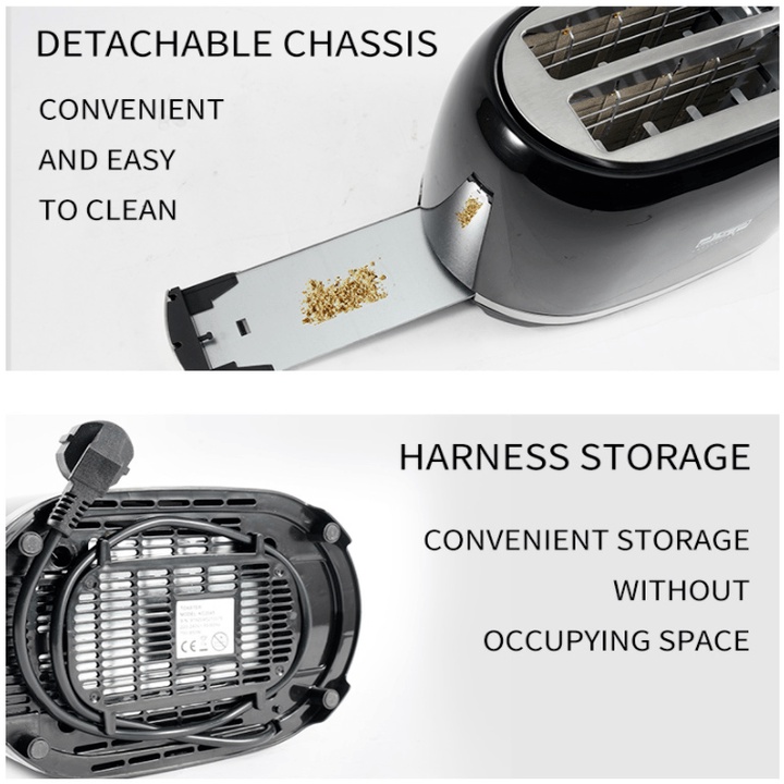- Khay hứng mẩu vụn bánh có thể lấy ra để vệ sinh máy dễ dàng hơn