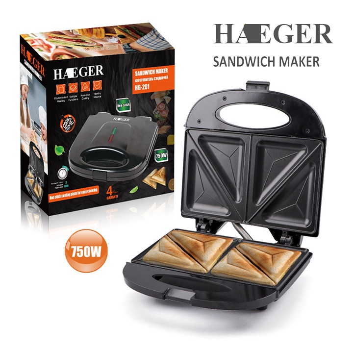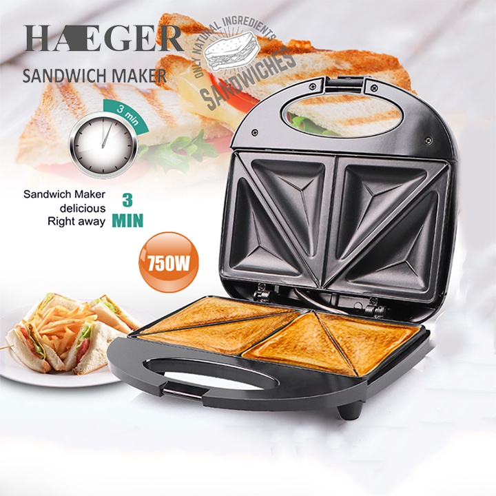 Máy nướng bánh mì sandwich, kẹp bánh mỳ làm đồ an sáng nhanh gọn Haeger Bảo hành chính hãng