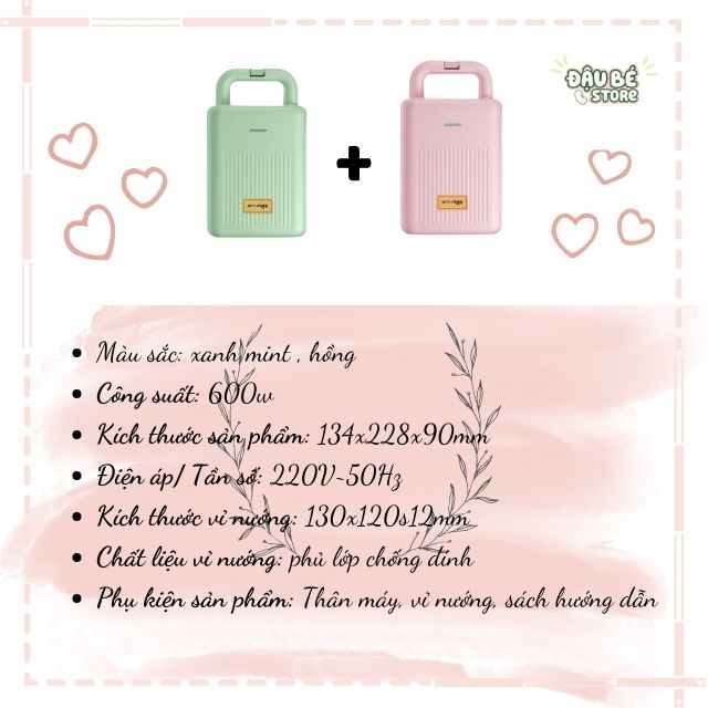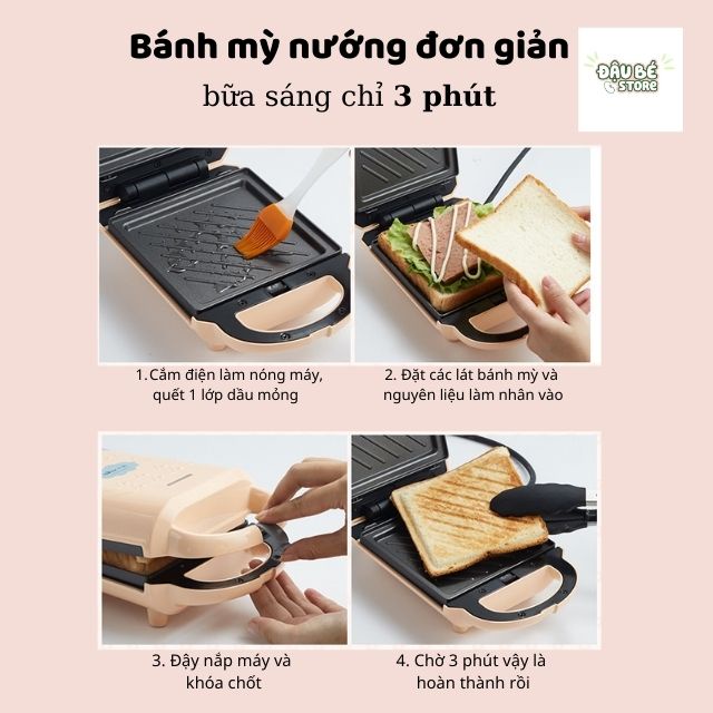 ✔ Chức năng: Nướng / kẹp bánh mì sandwich, bánh waffle, rán trứng,.. => Thiết kế nhỏ gọn, xinh xắn không tốn diện tích, thao tác thực hiện lại đơn giản. Chỉ với 5 phút bạn đã có một bữa sáng / bữa phụ đảm bảo vệ sinh mà vẫn đầy đủ chất dinh dưỡng.