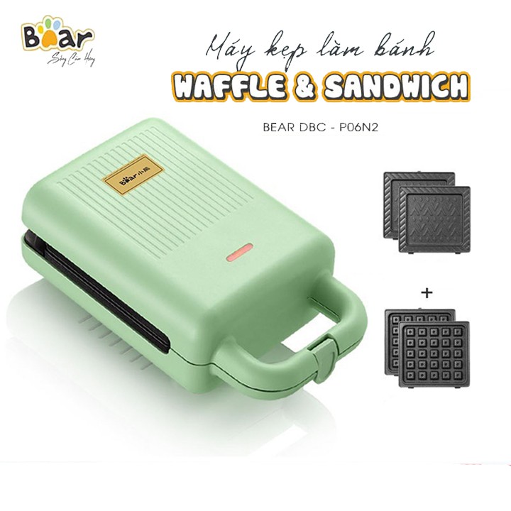 Máy nướng bánh mì Sandwich / Waffle đa năng Bear DBC-P06N2, Máy kẹp nướng bánh Bear 2 khuôn Chính Hãng