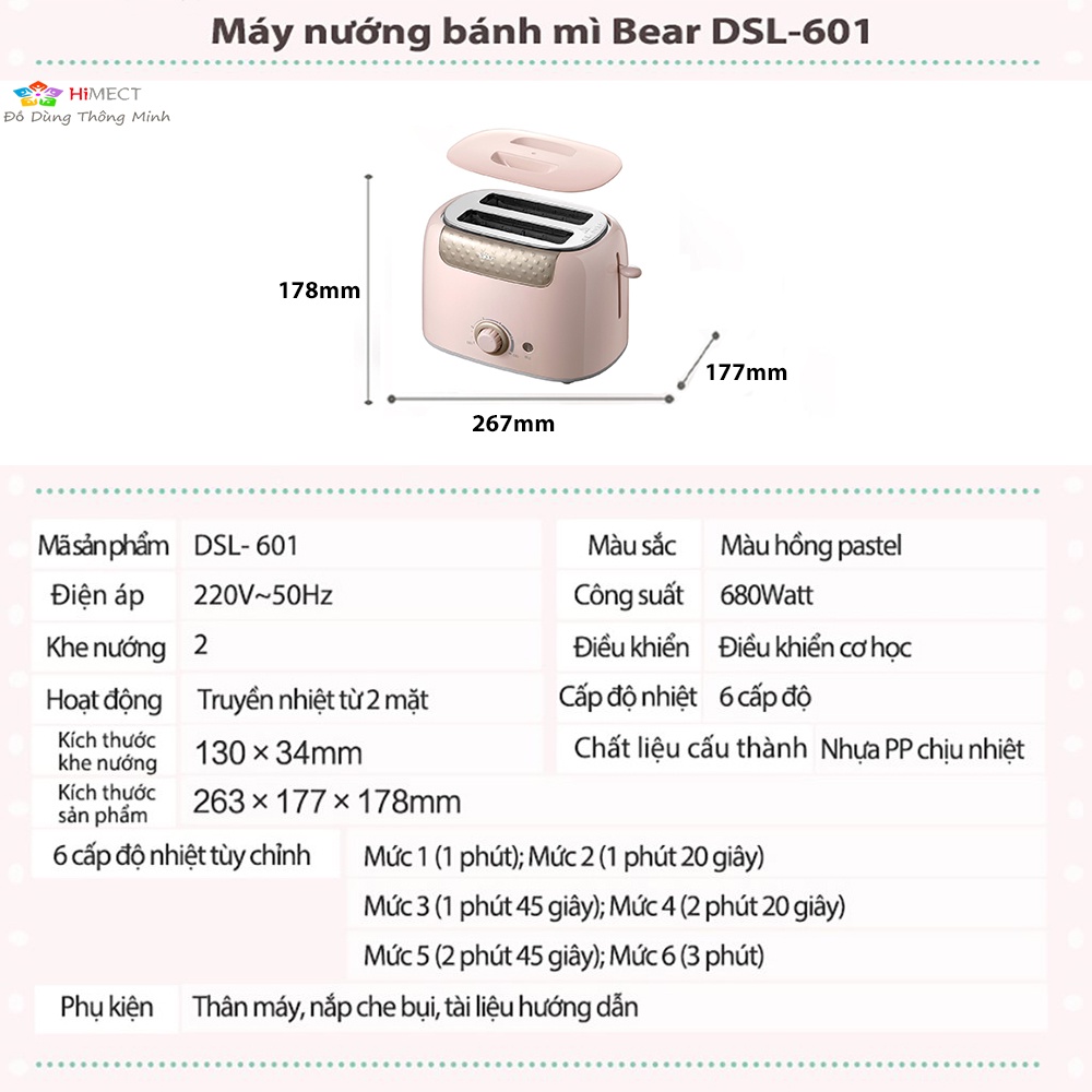 Máy nướng bánh mì sandwich waffle đa năng chuẩn bị bữa sáng nhanh gọn Bear DSL-601- HiMect➖ MÁY NƯỚNG BÁNH MỲ_ BEAR DSL-601