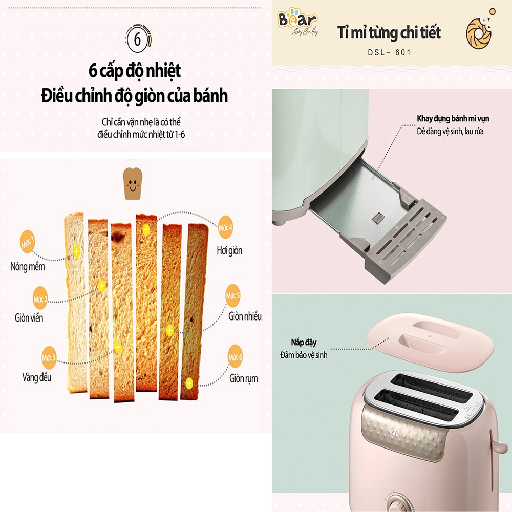 🍞 6 cấp độ nướng từ nóng mềm, giòn viền đến giòn rụm