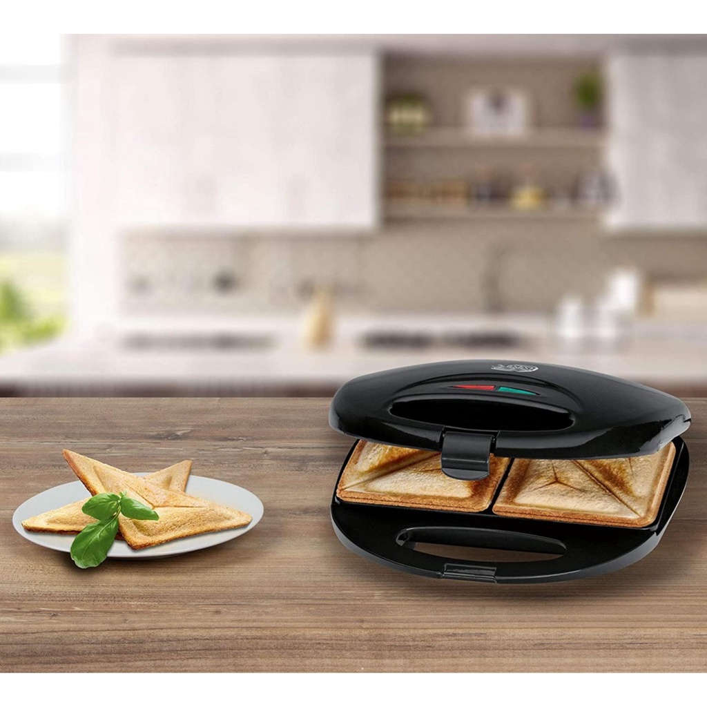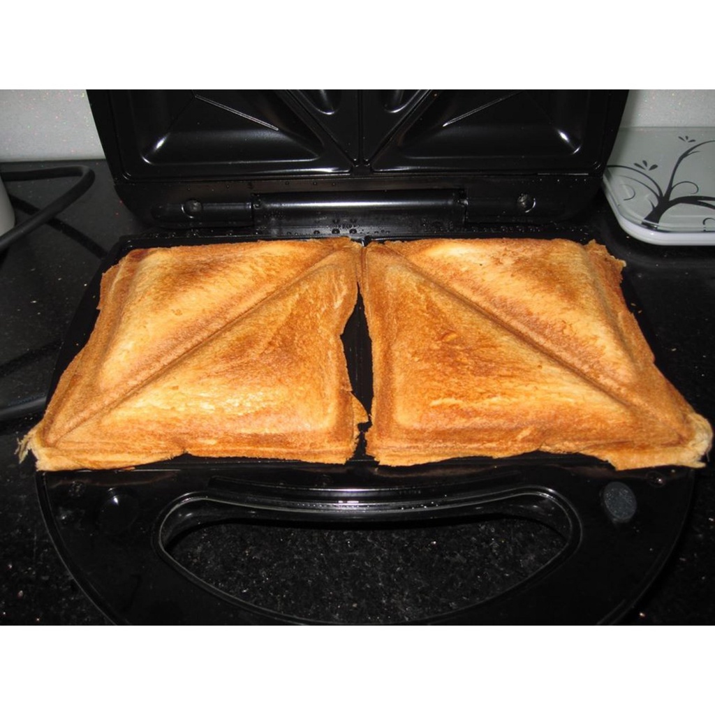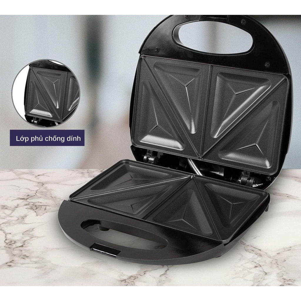 - Máy màu đen, khay nướng bên trong phủ lớp chống dính siêu bền rất tiện lau chùi. Chỉ cần cắm điện sau 30 giây là có bánh giòn ngon.