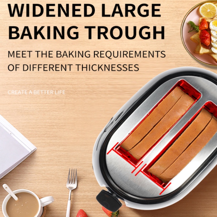 - 2 khe nướng lớn, độ rộng thay đổi cho nhiều kích cỡ
