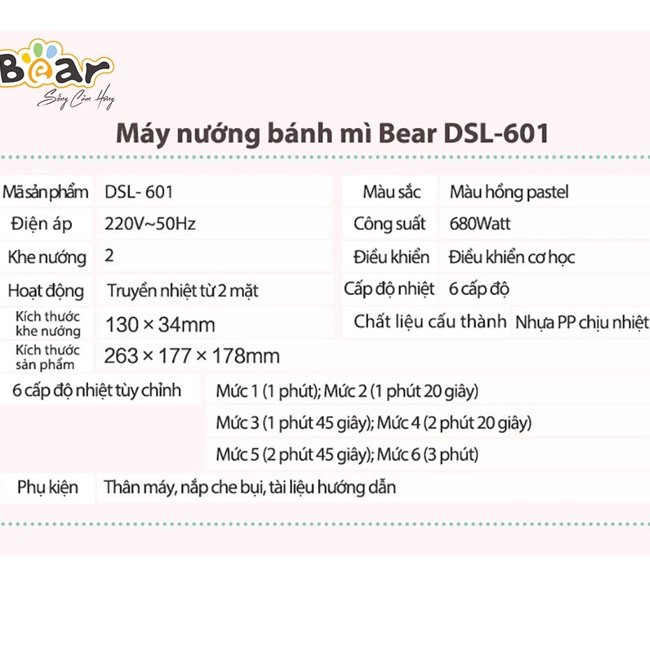 Thiết Bị Điện Gia Dụng > Đồ gia dụng nhà bếp > Máy nướng bánh || Máy nướng bánh mì sanwich Bear DSL-601 ( bản Quốc tế) 2 khe nướng với 6 cấp độ chống quá nhiệt nướng đều không cháyCòn hàng