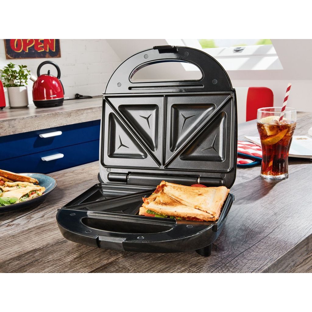 -Hướng dẫn chi tiết công thức nướng các loại bánh Sandwich ngon nổi tiếng (Turkey, Tuna, Pudgy pie Pizza, Bacon Egg and Cheese, thịt nguội, trứng, mứt quả, pate, bơ…) bỏ vào máy sau 1 – 2 phút, phần vỏ bánh sẽ được nướng giòn, ph-ần nhân bên trong vừa chín tới tạo vị thơm ngon, hấp dẫn.