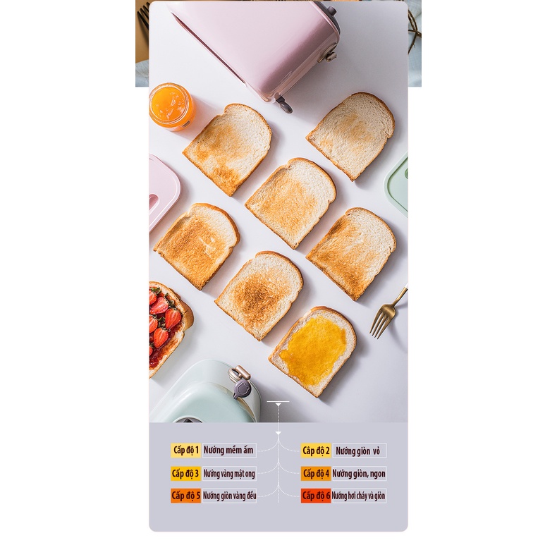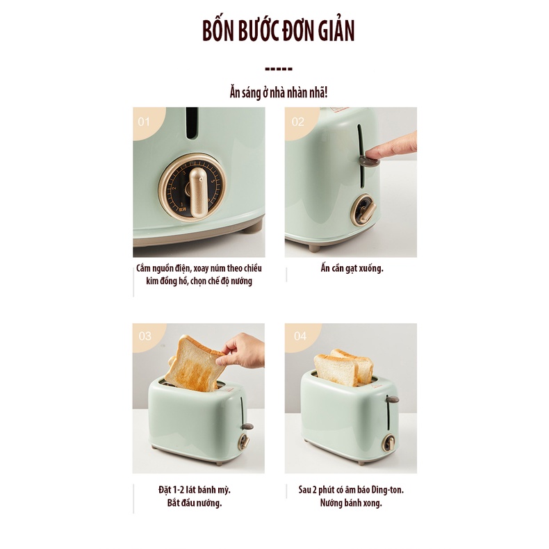 ✔Thời gian nướng từ 1-6phut, có khay hứng vụn bánh bên dưới. Máy nướng nhanh ko mất thời gian