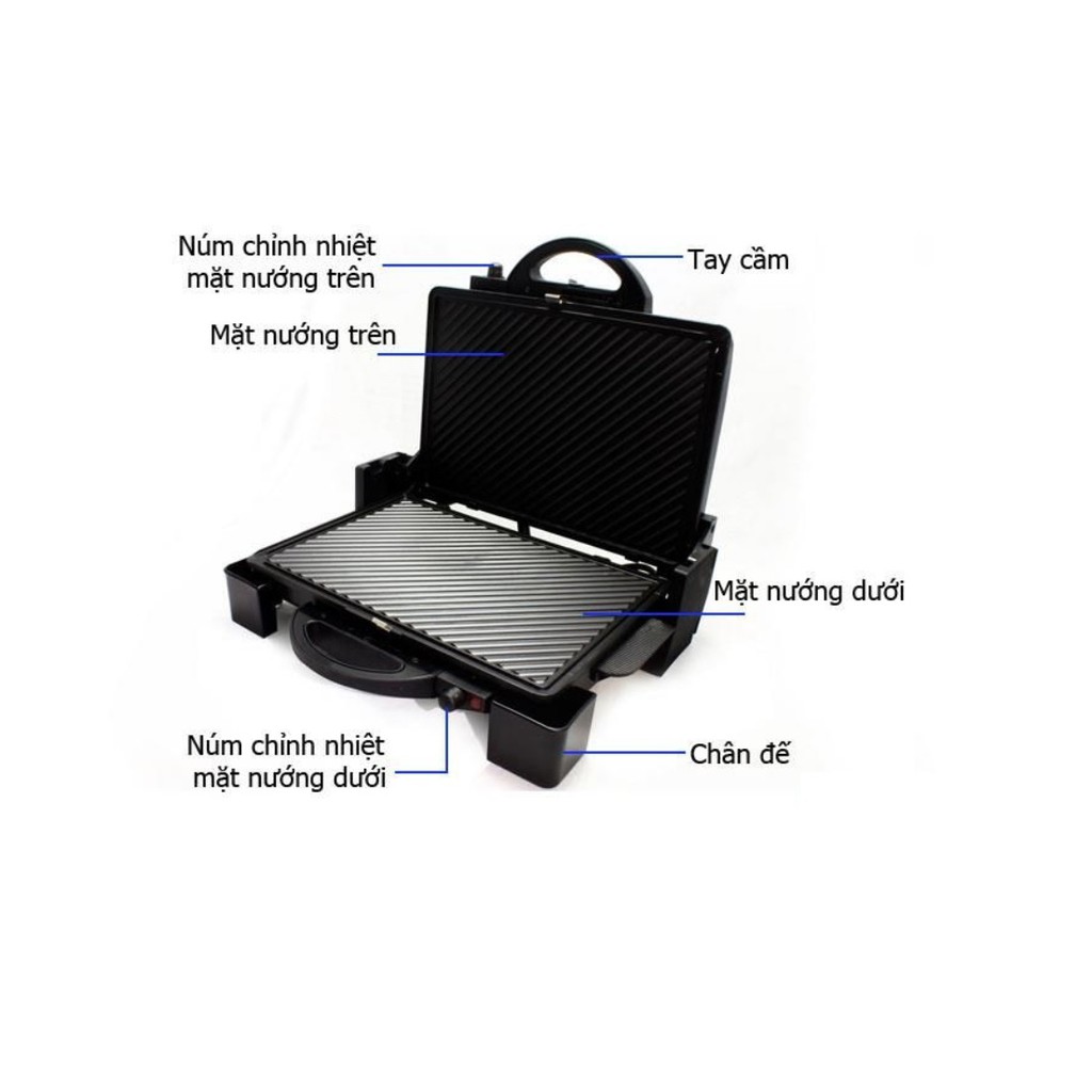 + Khi mở ra 180 độ bạn có thể sử dụng như 1 chiếc vỉ nướng điện thông thường với 2 bên khay nướng với 2 nút điều chỉnh nhiệt độ khác nhau