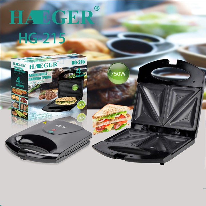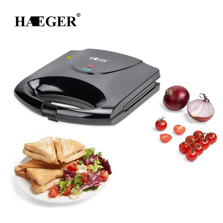 Máy nướng bánh Haeger giúp bạn có một mẻ 4 chiếc sandwich tam giác vàng rộm, đẹp tuyệt chỉ trong 3 phút.