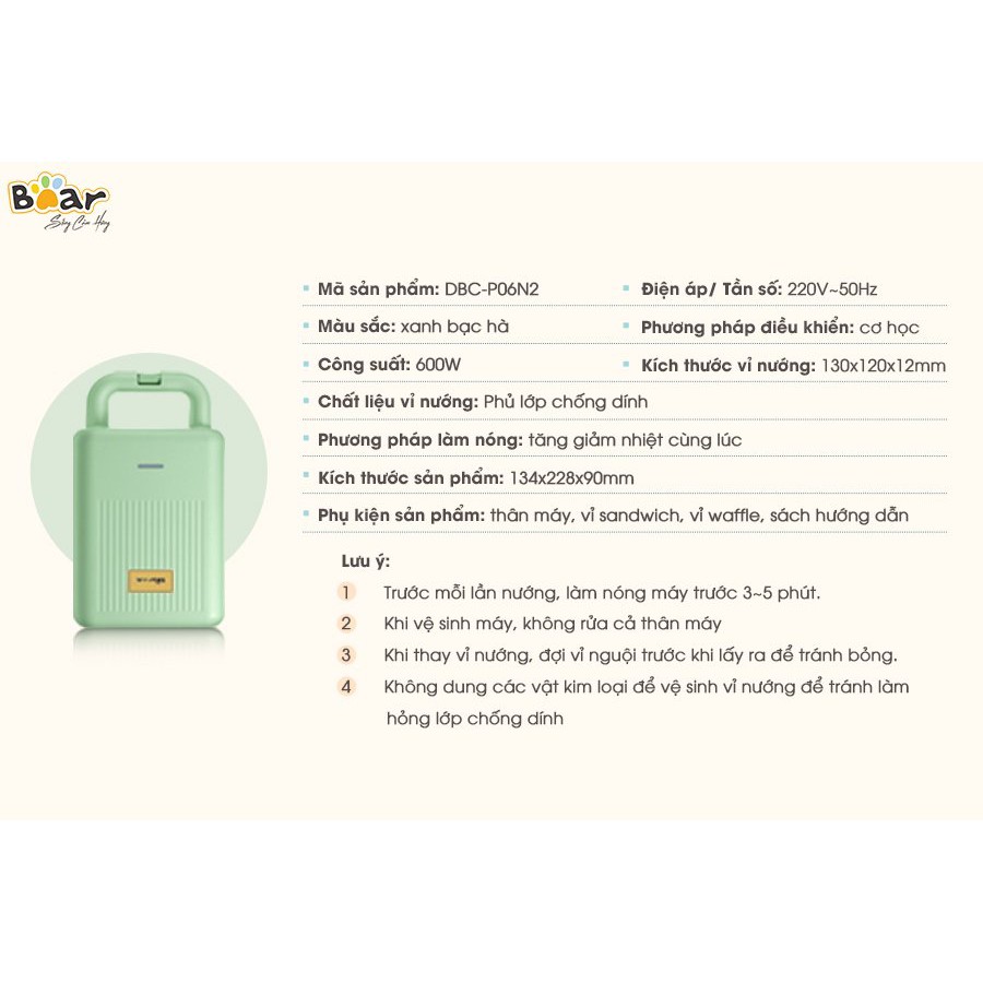 Thiết Bị Điện Gia Dụng > Đồ gia dụng nhà bếp > Máy nướng bánh || Máy Nướng Bánh Mỳ_Máy Kẹp Nướng Bánh Mì Sandwich - Waffle -Bánh Quế - Hotdog -Làm Bữa Sáng Cho Gia Đình_Bear P06N2Còn hàng