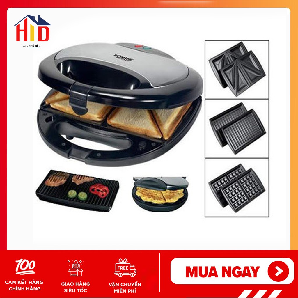- Máy có 3 chức năng: Nướng bánh Sanwich, Bánh mỳ kẹp, Vỉ nướng đa năng để nướng thức ăn (nướng thịt, nướng củ quả…)