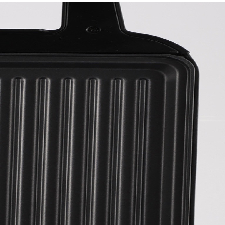 Máy có hai mặt nướng nên có thể nướng được nhiều thức ăn hơn, mỗi mặt đều có nút điều chỉnh nhiệt độ riêng. Hai mặt hoàn toàn có thể gập lại và có khóa chốt an toàn, tiện lợi để nướng bánh mì hay bánh sandwich.
